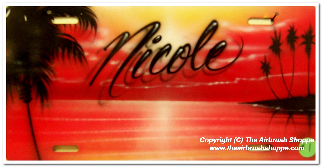 silhouettes, lettering, highlights, palm trees, etc.), but